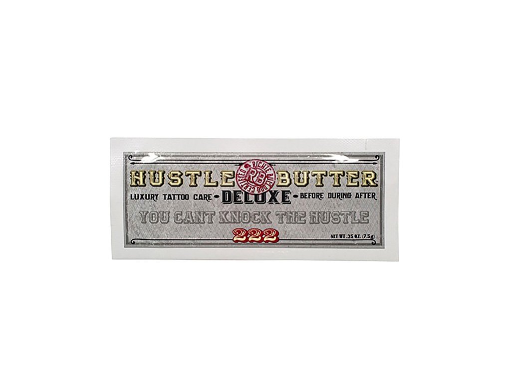 Hustle butter je 100 % přírodní veganský produkt určený pro ošetření kůže před tetováním, ale také jako péče o nové tetování pro zachování zářivosti barev. Díky obsahu aloe vera vyhlazuje pokožku a zajišťuje tak snazší pronikání barev do kůže, zmírňuje zarudnutí a krvácení. Obsah mangového másla má navíc hojivý efekt a zajišťuje hlubokou hydrataci.