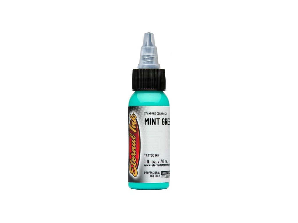 Jedná se o atraktivní a oblíbený odstín světle tyrkysové, známý jako mátově zelená, který poskytuje zářivou a dlouhotrvající barvu, jež je atraktivní volbou pro širokou škálu vzorů tetování. Inkoust je zcela ekologický a netoxický.