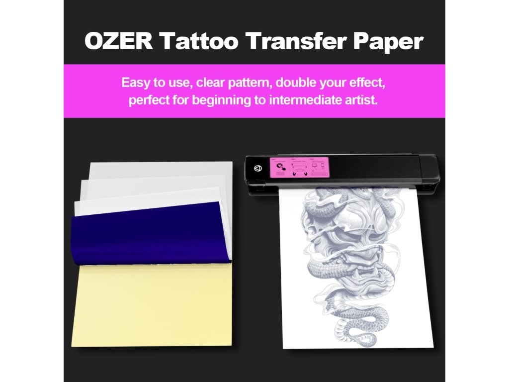 Velikost: 4vrstvý přenosový papír – Šablonový papír pro tetování je 4vrstvý list, který obsahuje vzorový list, ochranný papír, uhlík a podkladový list, který měří cca. 8a 2/5 -x 12, 213x305mm, které lze rozřezat na menší listy pro větší využití.