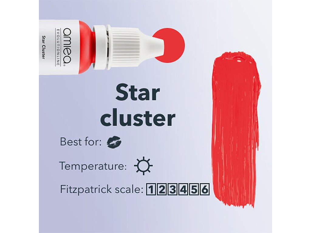 Amiea Star Cluster je rozkvetlý narůžovělý červený pigment, který se může pochlubit hustou barvou a je ideální pro dosažení podmanivého odstínu pro vylepšení rtů. Ať už se používá k zakrytí tmavých rtů nebo k neutralizaci studených odstínů, Star Cluster vám umožní vytvořit okouzlující pigmentaci rtů.