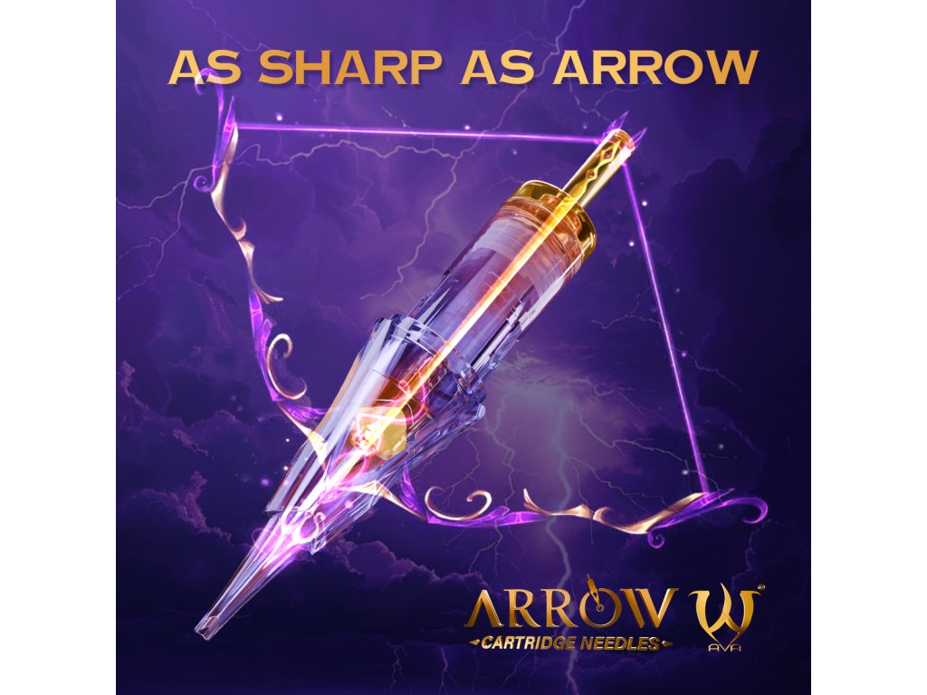AVA Arrow Cartridge Round Shader je navržena pro hladké stínování, přechody a jemné vyplňování ploch. Jehly jsou seskupené do kruhového tvaru, avšak s větším rozestupem než u Round Linerů, což zajišťuje měkčí přechody a rovnoměrné nanášení inkoustu.