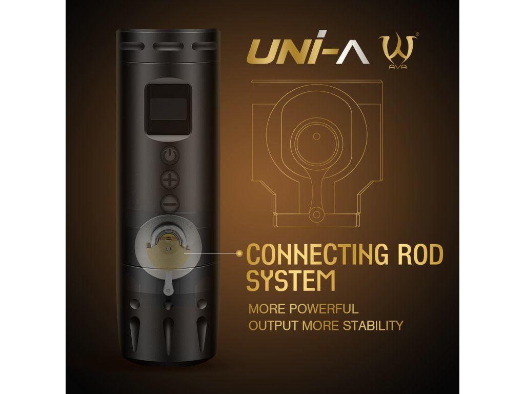 AVA UNI A v šedém provedení se zdvihem 3,5 mm je lehký bezdrátový tetovací strojek s krátkým tělem a přehledným ovládáním. Hodí se pro tatéry, kteří chtějí mobilní řešení bez zbytečně robustní konstrukce.