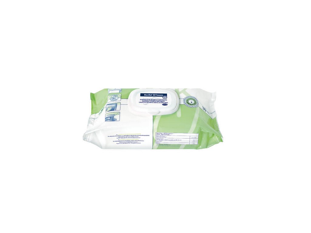 - dezinfekční ubrousky připravené k použití, napuštěné roztokem Bacillol® 30 Foam, vysoce odolné proti roztržení, savý PET flísový materiál