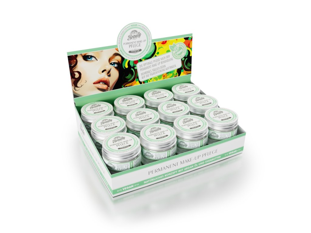 Objevte jedinečnou péči o pleť po permanentním make-upu s naším Believa Beauty Butter. Toto veganské máslo je speciálně navrženo tak, aby podpořilo regeneraci pokožky a zajistilo dlouhotrvající výsledky permanentního make-upu. Obsahuje vysoce kvalitní bambucké máslo a arganový olej, které jsou známé pro své intenzivně hydratační a zklidňující účinky. Bambucké máslo napomáhá hojení a zanechává pokožku jemnou a vyživenou, zatímco arganový olej přináší dávku antioxidantů a podporuje obnovu kožních buněk.