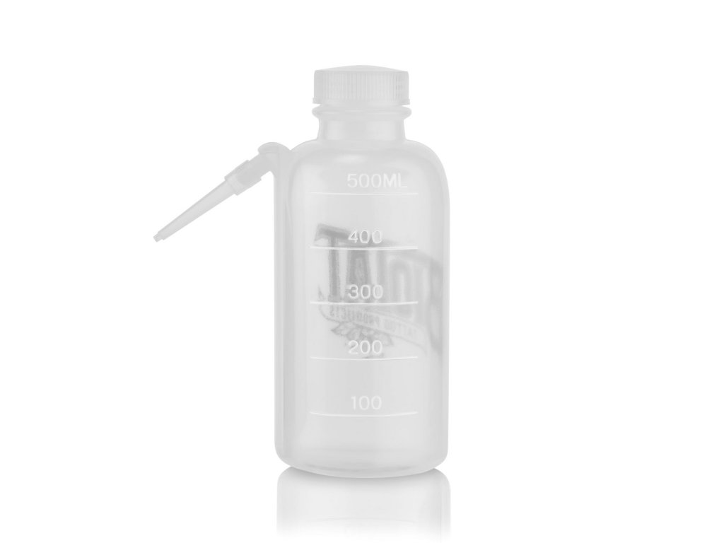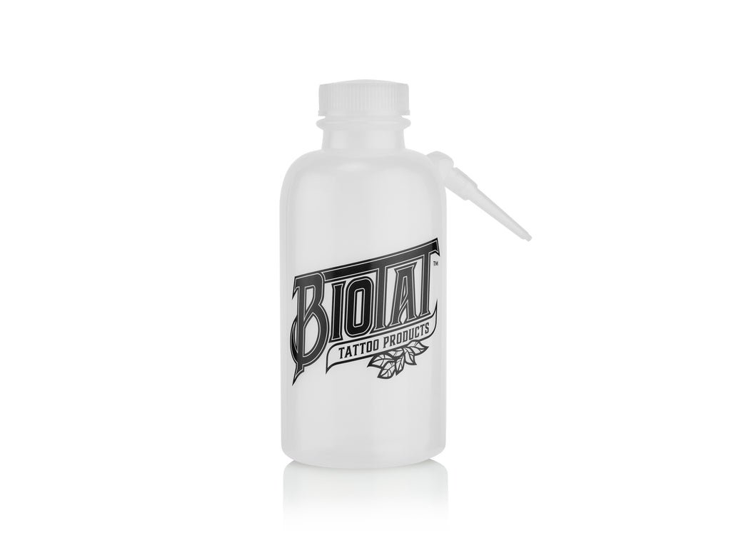 Biotat láhev s objemem 500 ml je vybavena širokým hrdlem, díky kterému je plnění tekutin snadné a bez nechtěného rozlití. Skvěle se hodí zejména pro zelené mýdlo, ale i další přípravky běžně používané v tetovacím studiu.