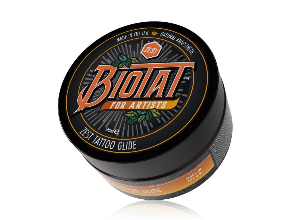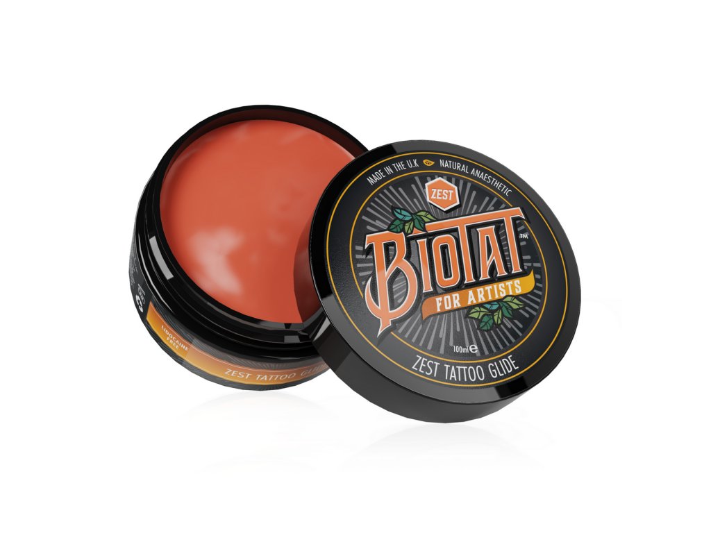 Biotat citrus máslo je speciálně vyvinuté pro použití během tetování. Obsahuje přírodní hřebíčkový olej, který působí jako lokální anestetikum a pomáhá zmírnit bolest i podráždění – bez použití lidokainu. Jemná citrusová vůně navíc přináší příjemný osvěžující efekt.