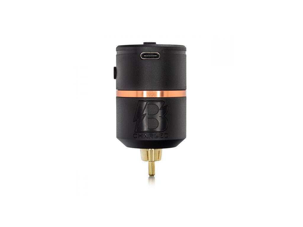 Bishop B-Charged je bezdrátový napájecí zdroj s výdrží baterie až 12+ hodin a dobou rychlého nabíjení pouze 1,5 hodiny. Může napájet téměř jakýkoli stroj ve stylu pera s konektorem RCA a pracuje v rozsahu napětí 4 – 12 voltů.