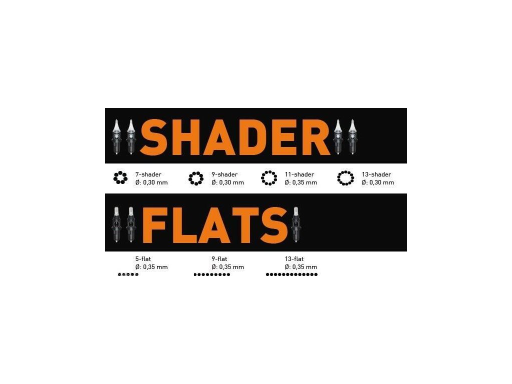 Cartridge Safety Cheyenne je vyrobena z vysoce kvalitních tetovacích jehel. Její rychlé vložení do tetovacího strojku a jednoduchá aplikace barvy do kůže umožňuje přesné tahy a bezproblémovou práci tatéra. Pro zákazníka znamená méně bolesti a také rychlejší hojení nového tetování. Součástí je ochranná membrána, která chrání dutinu gripu i celý tetovací strojek před kontaminací krví, inkoustem nebo jinými nečistotami. Zajišťuje tak dokonalou hygienu tatérovi, ale i klientům. Individuální balení jehel vyrobených z lékařského materiálu Lexan navíc zajišťuje maximální sterilitu výrobku. Cartridge od výrobce Cheyenne určená pro rotační strojky nabízí širokou škálu tetovacích jehel různých velikostí a typů: LONG TAPER (Nejrozšířenější druh jehel s dlouhým hrotem o průměru 0,25 – 0,35 mm. Vhodné pro tvorbu linek, stínování a výplní.), BUG PIN (Jehly o průměru 0, 30 – 0,35 mm jsou určené pro jemné linky a stínování. Díky dlouhému drsnějšímu hrotu se na nich déle a lépe udrží barva.), MEDIUM TAPER (Jehly s kratším hrotem nejčastěji o průměru 0,30 mm určené k tvorbě linek.) POWER (Jehly s širokým dlouhým hrotem o průměru 0,40 mm ideální k vytváření plných linek.)
