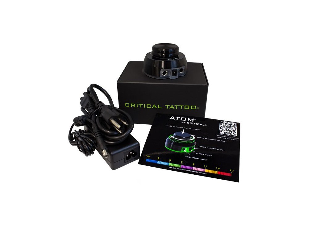Crital Atom je malý, lehký, spolehlivý profesionální napájecí zdroj vhodný pro každodenní použití v tetovacím studiu.