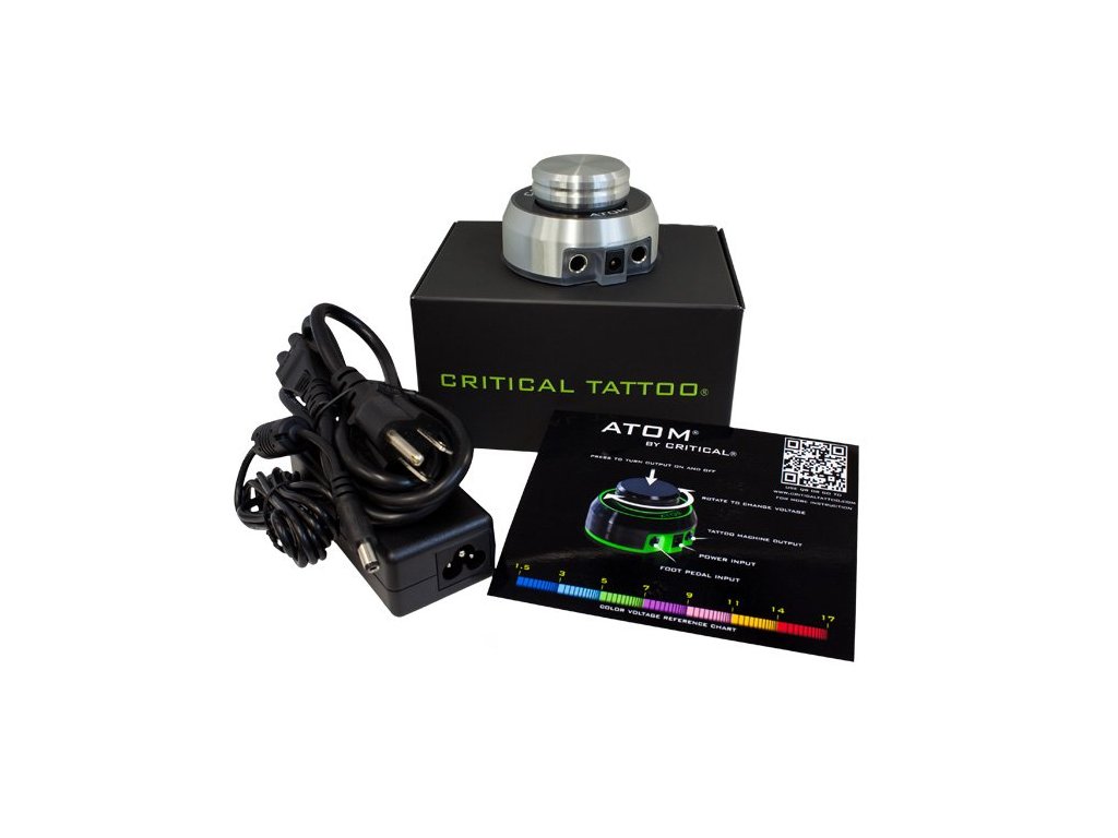 Crital Atom je malý, lehký, spolehlivý profesionální napájecí zdroj vhodný pro každodenní použití v tetovacím studiu.