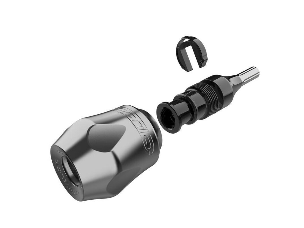 Gorilla Grip Click Ergo od Darklab - FK Irons byl designován s důrazem na ergonomii a přirozený úchop tetovacího strojku. Jeho velikost eliminuje potřebu omotávat grip množstvím ochranných pásek na grip. Gorilla Click Ergo Grip je tlustý od 32 do 38 mm pro optimání komfort a bolesti rukou při dlouho trvajícím tetování. Vybrání na gripu usnadňuje uchopení a držení gripu bez nutnosti tlačit silou a tak z něj dělá perfektního partnera pro linkování i barvení. Jeho hmotnost pak pomáhá při práci s jehlou při tlustých linkách nebo velkých výplních. Se systémem Ratchet Disc click nastavujete hloubku jehly pomocí otáčení a díky konstrukci tak grip drží své nastavení hloubky jehly a nezmění jej ani při používání těžkého strojku. 3mm otvor pro tyčku je pak kompatibilní se všemi strojky s vestavěnou vodící tyčkou. Klíčové vlastnosti: Nastavitelná hloubka jehly Průměr: 32 - 38 mm Ergonomický design Kompatibilní s autoklávy a studenou sterilizací Made in the USA by FK Irons Celtic Supply je oficiálním distributorem výrobků společnosti FK IRONS / Darklab.Buďte první, kdo napíše příspěvek k této položce.