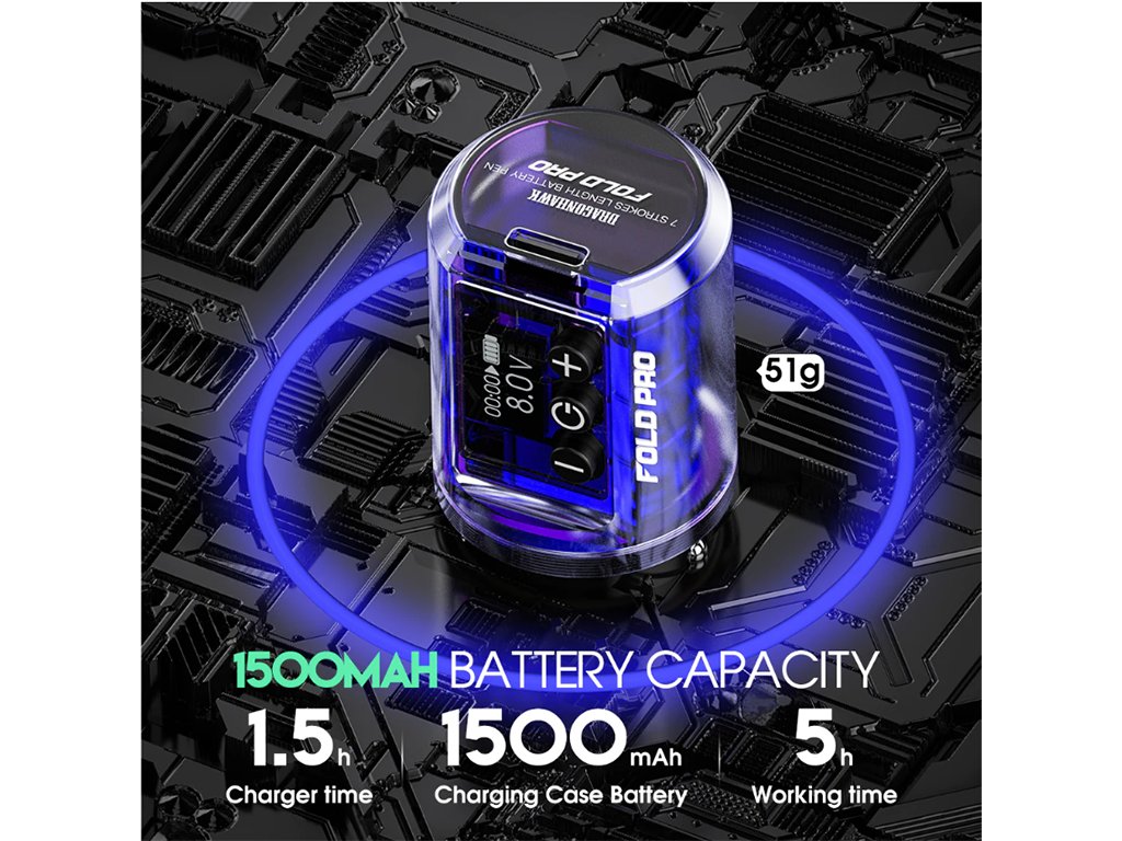 - Vysoká kapacita baterie: S 1500 mAh může umělec používat strojek po dlouhou pracovní dobu 4-6 hodin.