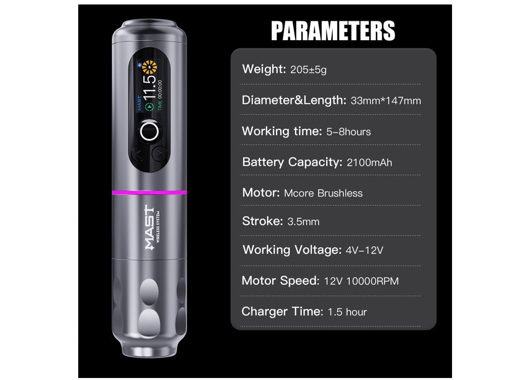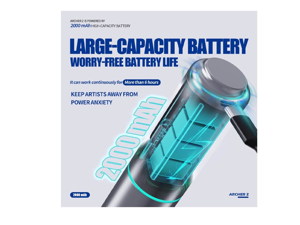 Životnost baterie: 3-6 hodin při plném nabití (*doba nabíjení se může lišit v závislosti na použitém napětí, značce a velikosti jehly a také na okolních faktorech, jako je teplota atd.)