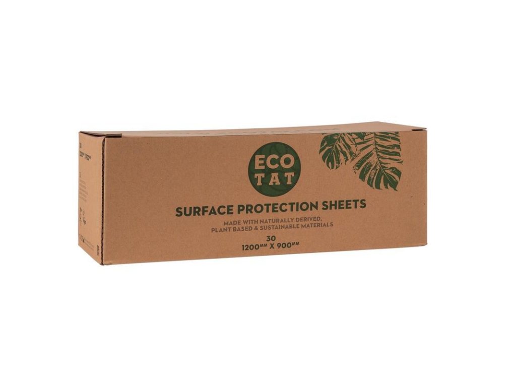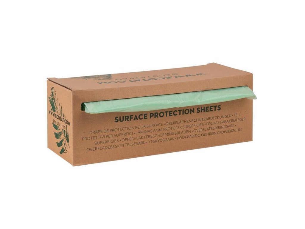 ECOTAT ochrana pracovní plochy je vyrobena z materiálu na rostlinné bázi a jsou ekologicky odbouratelné. Je alternativou pro jednorázové výrobky z plastů vyrobených z fosilních paliv. Je tenčí a lehčí než plasty, ale stejně odolné. Používáním výrobků ECOTAT snižujete dopad své práce na životní prostředí. ECOTAT ochrana pracovní plochy má rozměry 1200x900mm. Balení obsahuje 30ks. Je možné je nůžkami upravit do potřebné velikosti. Při mírném zvlhčení povrchu před aplikací podložky tato ještě lépe přilne k povrchu.