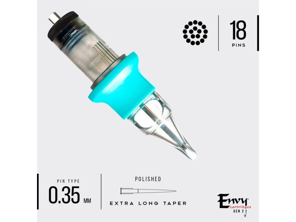 Cartridge Envy Gen 2 se vyznačuje elegantnějším, lehčím designem a oporou pro prsty; poskytuje takovou úroveň pohodlí a kontroly, jaké jste dosud neviděli v pouzdru s jehlou. Vyráběny se stejnou vynikající kvalitou, které umělci u TATSoul důvěřují, kazety Gen 2 jsou vybaveny značkami a konfiguracemi značky Envy Needle a konfiguracemi, které znáte a máte rádi. Schváleno umělci Umělci řídí naši inovaci a Tatsoul dává zpětnou vazbu umělce do všech našich návrhů produktů Perfect Needle Taper Jehly Envy cartridge jsou dokonale tvarované a nabízejí konfiguraci pro každou potřebu Proces kvality Envy má nejvyšší standard QC procesu v oboru. Každá jehla musí projít důkladným 30bodovým procesem kontroly, než získá jméno Envy Opora pro prsty Součástí cartridge je opora pro prsty