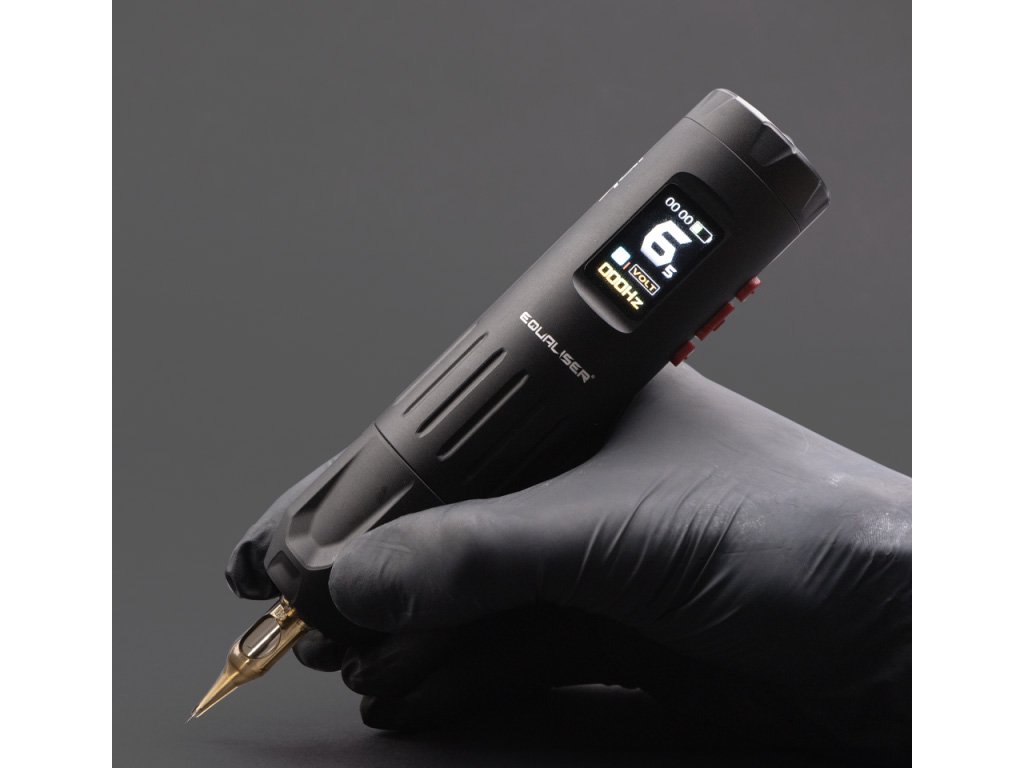 Equaliser Ink Master je pokročilý bezdrátový tetovací stroj, který kombinuje moderní technologii s pohodlnou prací. Je vybaven zdvihem jehly 3,5 mm a nastavitelným prodloužením, umožňuje vám rychle a přesně vytvářet linie nebo kontury, které se přizpůsobí vašim individuálním potřebám. Ergonomický design strojku zajišťuje mimořádný komfort práce, který je důležitý pro tatéry všech úrovní. Díky dvěma přiloženým bateriím můžete vytvářet své výtvory až 16 hodin bez přerušení, což umožňuje dlouhé sezení bez nutnosti dělat přestávky.