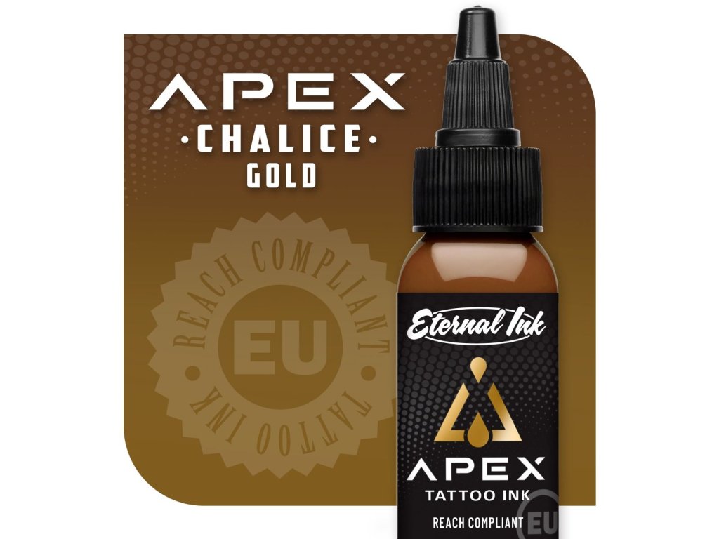 CHALICE | GOLD: Tento teplý a lesklý zlatý odstín vnáší do tetování pocit okázalosti a vznešenosti. Často se používá k vylepšení návrhů s královským nebo obřadním tématem a dodává nádech majestátnosti a síly.