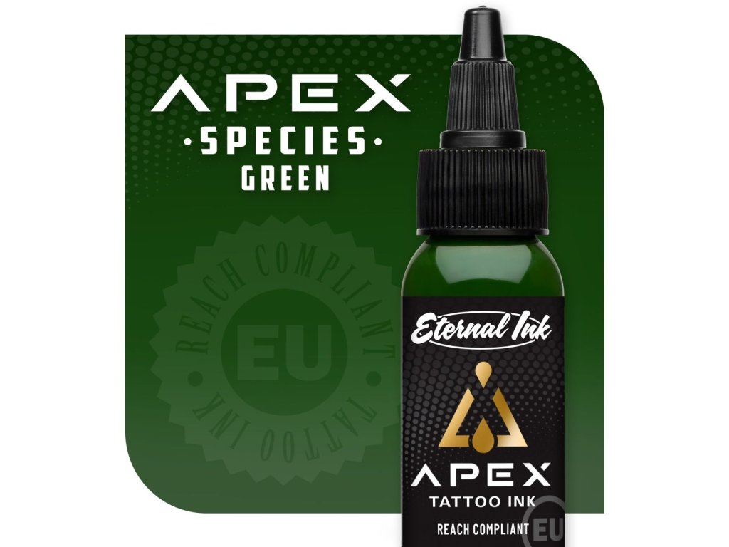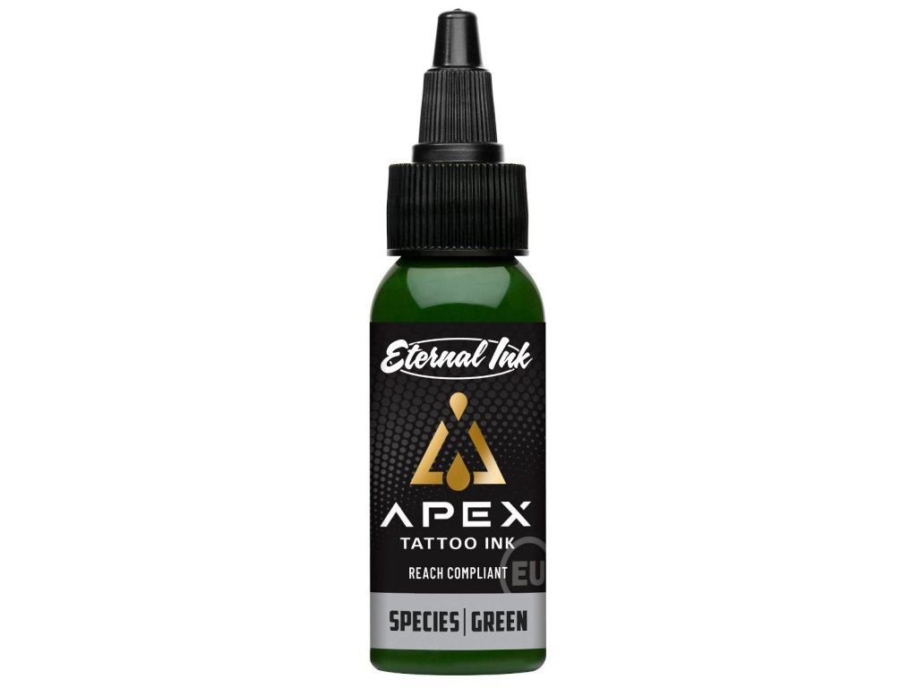 Řada APEX je nejvyšší kvality, jak se od Eternal Ink očekává, a je vyráběna s použitím pigmentů nejvyšší kvality. Barvy APEX jsou dávkově konzistentní, což znamená, že můžete kdykoli pokračovat ve svém tetovacím projektu a být si jisti, že obdržíte stejný barevný tón. Všechny barvy APEX byly testovány na trvanlivost a nejsou v žádném případě horší než ostatní barvy od Eternal Ink. Připravte se na barevné dobrodružství v souladu s REACH s řadou Eternal Ink APEX.