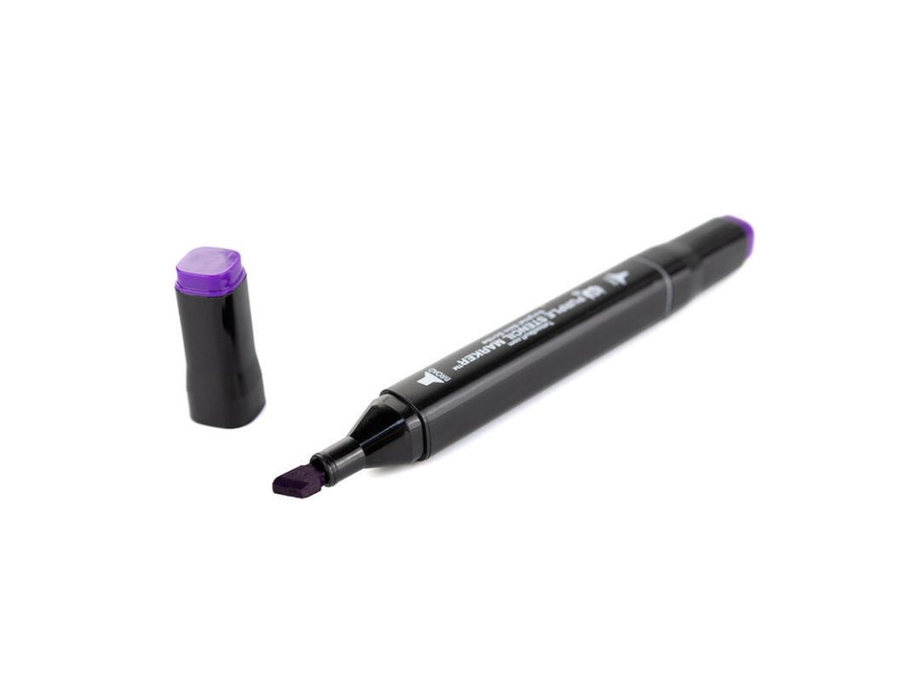 Nová a vylepšená značka Stencil Stuff purple Stencil Marker je zpět! Podle hesla „dva jsou lepší než jeden“ je tento značkovač vybaven dvěma špičkami, které lze použít pro jemné detaily nebo vyplnění větších oblastí pokožky. Špička štětce značky Purple Stencil Marker je ideální pro jemné detaily a kreslení skic na pokožce. Široký hrot značky lze použít k vyplnění větších ploch. Je ideální pro hrubé skicování a volné ruční kreslení geometrických tvarů nebo vzorů i silných čar. vyrobené pro použití na kůži