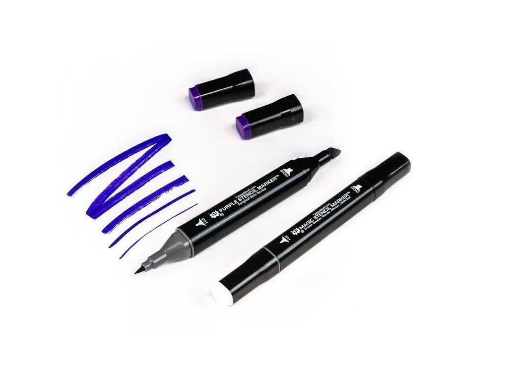 Nová a vylepšená fixa Stencil Stuff purple Stencil Marker je zpět! Podle hesla „dva jsou lepší než jeden“ je tato fixa je vybavena dvěma špičkami, které lze použít pro jemné detaily nebo vyplnění větších oblastí pokožky. Špička štětce značky Purple Stencil Marker je ideální pro jemné detaily a kreslení skic na pokožce.