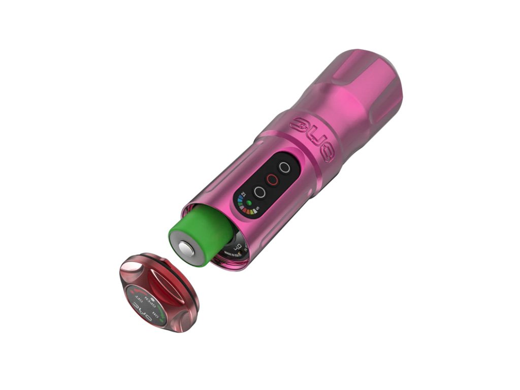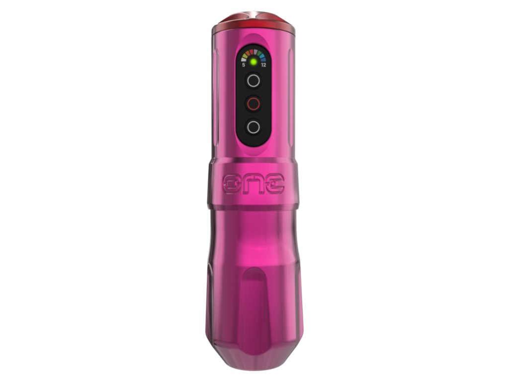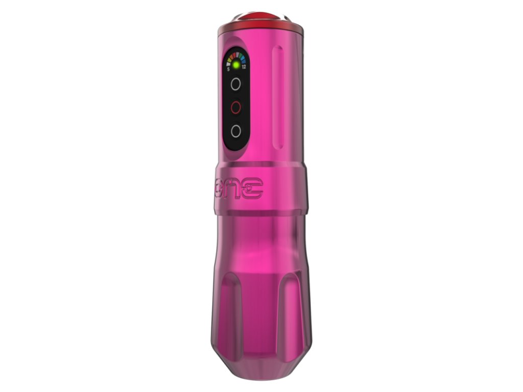 Tento tetovací strojek má lesklý růžový povrch. Je vhodný na stínování a realistické práce.