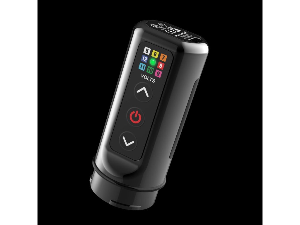 Napájecí zdroj od FK Irons - baterie pro napájení tetovacího strojku Flux Vlastnosti: • výdrž 15 hodin na jedno nabití. Možnost práce při připojení na nabíječku USB-C • výstupní napětí 6 - 12V • vyšší hustota energie pro větší stabilitu a spolehlivost • Dynamic Power Path Management: USB-C Li-Ion baterie • automatické vypnutí baterie • automatický jumpstart • rychlé nabíjení proudem 1.5 A • extrémně kompaktní velikost, snadné přenášení • vestavěný bluetooth. Spolupracuje s aplikací Hover / Mobile App • možná aktualizace firmware • režim "shipping mode" pro nulovou spotřebu • hardware/software reset • podpora bezdrátového pedálu (není v balení) • rychlé nabití Automatické detekce: • detekce přebití (OVP) • detekce přílišného vybití (UVP) • detekce příliš vysokého nabíjecího proudu (OCC) • detekce příliš rychlého vybíjení (OCD) • detekce polarity (SCP) hmotnost 85g