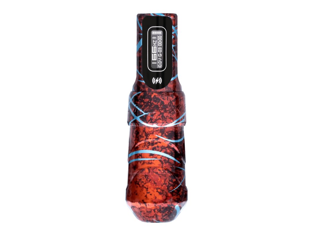 Flux Max je revoluční tetovací stroj, který přináší nejpokročilejší technologie do rukou umělců. S unikátním lávovým vzorem a chladně modrými akcenty na baterii, těle a úchytu, je nejen esteticky působivý, ale i funkčně dokonalý.