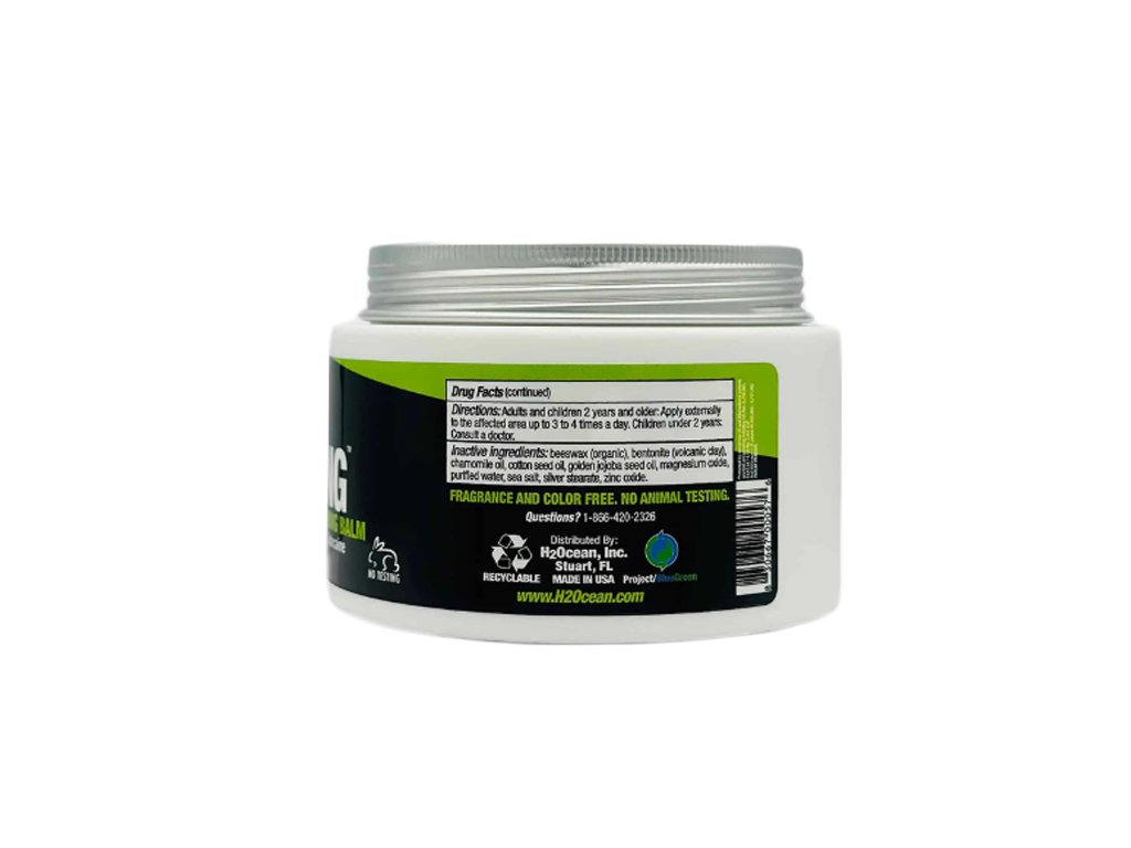 H2Ocean má 7 patentů se směsí nejlepších organických složek, jako je sůl z Červeného moře, vulkanický jíl a čištěná voda. Poskytují základní minerály pro extrémně rychlé hojení. Organické složky včetně včelího vosku, mořské soli, oxidu stříbrného a oxidu zinečnatého tvoří přírodní antibakteriální ochranný prostředek, který vydrží déle. Zklidňující složky heřmánkového oleje, oleje ze semen bavlníku, rostlinného glycerinu a zlatého jojobového oleje pokožku zklidňují. To vytváří uklidňující účinek pro hojení kožních buněk, což umožňuje rychlejší růst nových buněk.