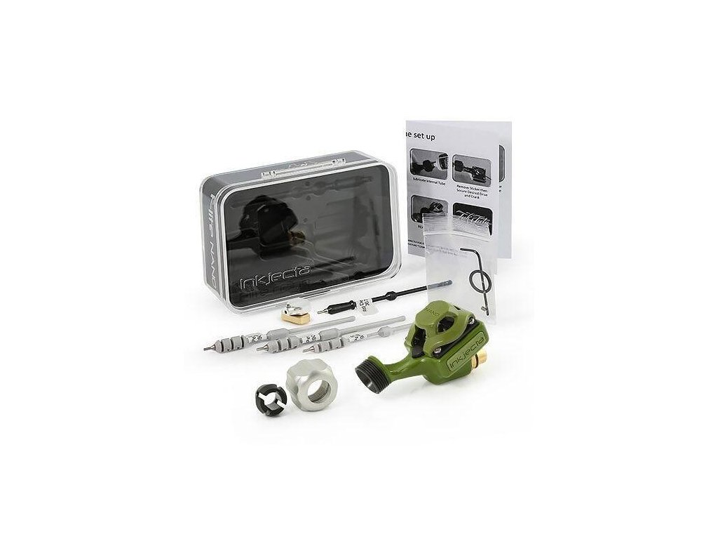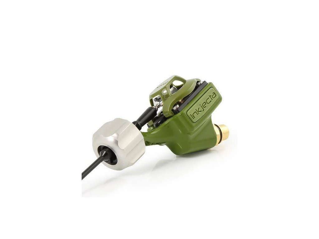 Inkjecta Flite Nano Ultra Lite Olive Green je nejnovější tetovací strojek do rodiny Flite nano. Specifikace: Rozsah napětí: 4.5 - 18V Hmotnost: 45 gramů motor vyrobený pomocí nanotechnologií LED světlo (indikuje plnou funkčnost) karbonový rám vyměnitelný excentr pro nastavení stroke vyměnitelný kryt motoru a excentru vyměnitelné tyčky z excentru pro nastavení délky (give) vyměnitelné ochrany pro zabránění skluzu strojku z pracovního stolu kombo hlavice pro použití téměř všech gripů na cartridge Balení obsahuje 3.25 Excenter nová karbonová tyčka semi-rigid needle bar soft, medium soft and hard torsion bar (needle bar) Inox MX6 lubricant allen key spare grub screw for cam user manual and quick start guide