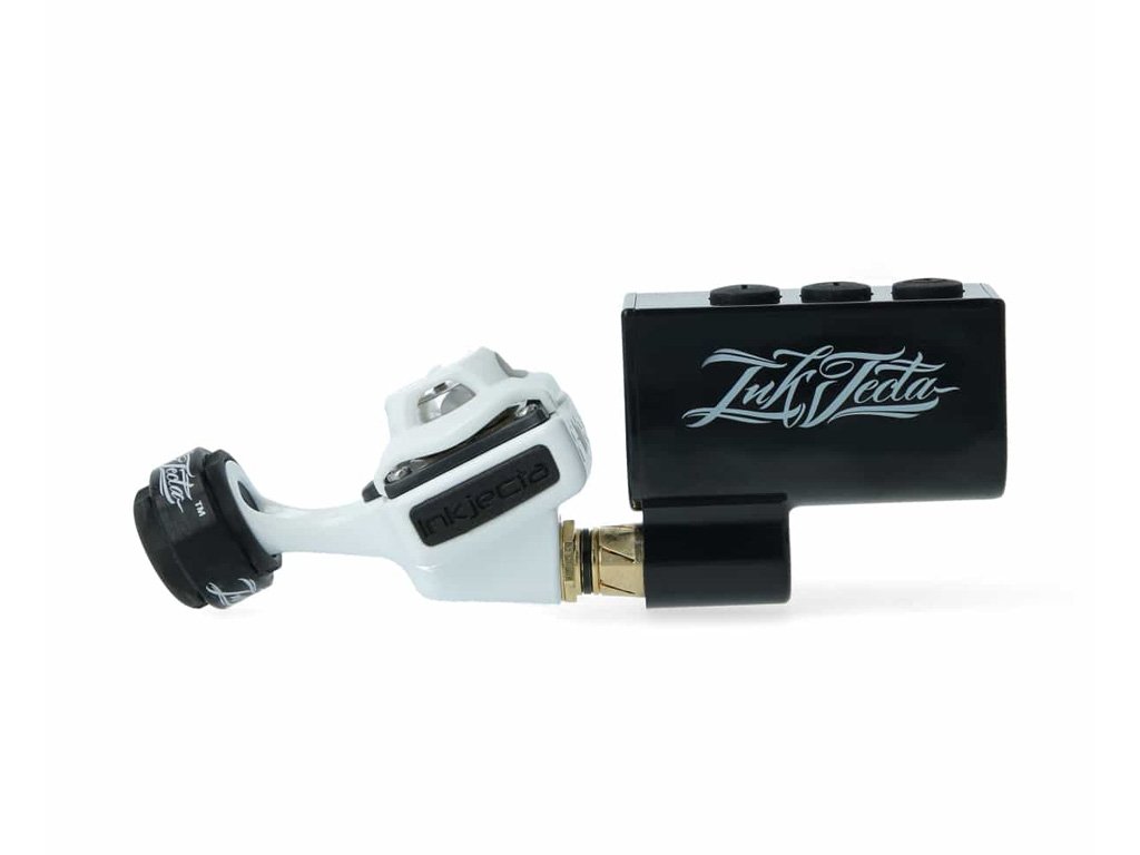 Univerzální baterii Inkjecta lze použít na jakémkoli tetovacím stroji RCA a lze ji použít v jakémkoli úhlu, který je pro vás pohodlný, což umožňuje rotaci o 360°, která vám pomůže najít správnou rovnováhu pro vás a váš stroj.