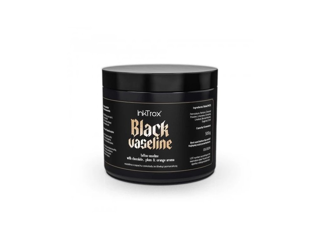 Jedná se o fantastický produkt s vůní čokolády, švestek a pomerančů, který je skvělý pro tatéry i majitele tetování. Vaseline InkTrox Black je především velmi bezpečná a antialergenní látka, která obsahuje mimo jiné aktivní uhlí, které má čistící a protizánětlivé účinky. Je vhodný pro všechny typy pleti a je nesenzibilizující a nedráždí. Nejen, že je dokonale snášenlivý, ale má i ochranný účinek. Pokožku hydratuje a promašťuje a dodává jí správnou klouzavost, díky čemuž chrání před veškerým podrážděním, které by mohlo při tetování nastat. A co víc, vazelína během tetování zabraňuje rozmazání inkoustu a zlepšuje čistotu při práci. Navíc dobře navlhčená kůže je na tetování rozhodně lepší. Vaseline InkTrox Black je díky své viskozitě také skvělý pro přípravu pracovní stanice tatérem před zákrokem. Usnadňuje připevnění nádobek s inkoustem k pracovní stanici, aby se neposunuly nebo nerozlily. Další výhodou tohoto produktu je vůně čokolády, švestek a pomerančů a černá barva, díky které je tato vazelína jedinečná a vyniká mezi ostatními produkty. Každý zákazník tetovacího studia se mu určitě bude věnovat. Pokud však zvažujete nákup vazelíny pro účely péče o pleť, je na to vhodná doba. Vaseline InkTrox Black je ideální pro udržení vaší pokožky a nehtů v dobrém stavu.