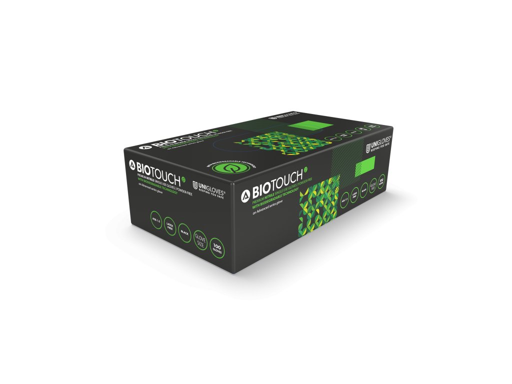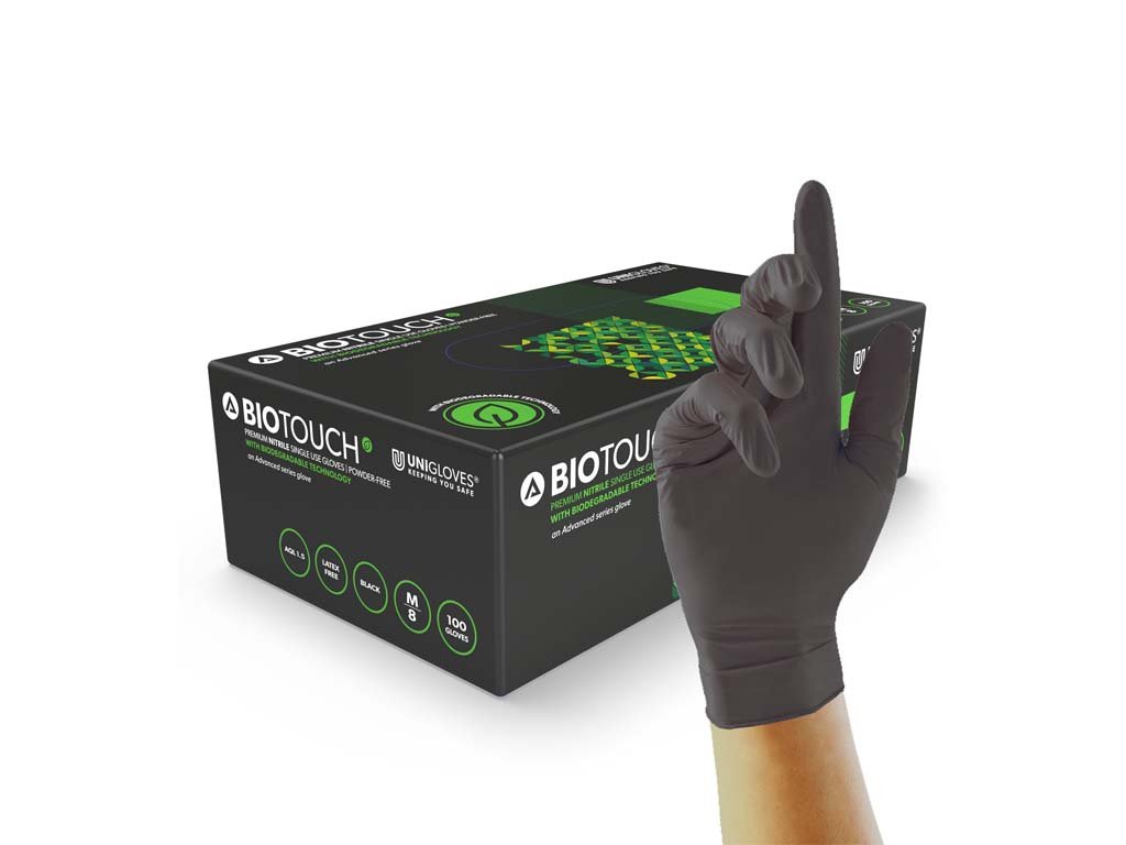Jednorázove rukavice Unigloves BioTouch – biologicky odbouratelné nitrilové rukavice černé - 100ks