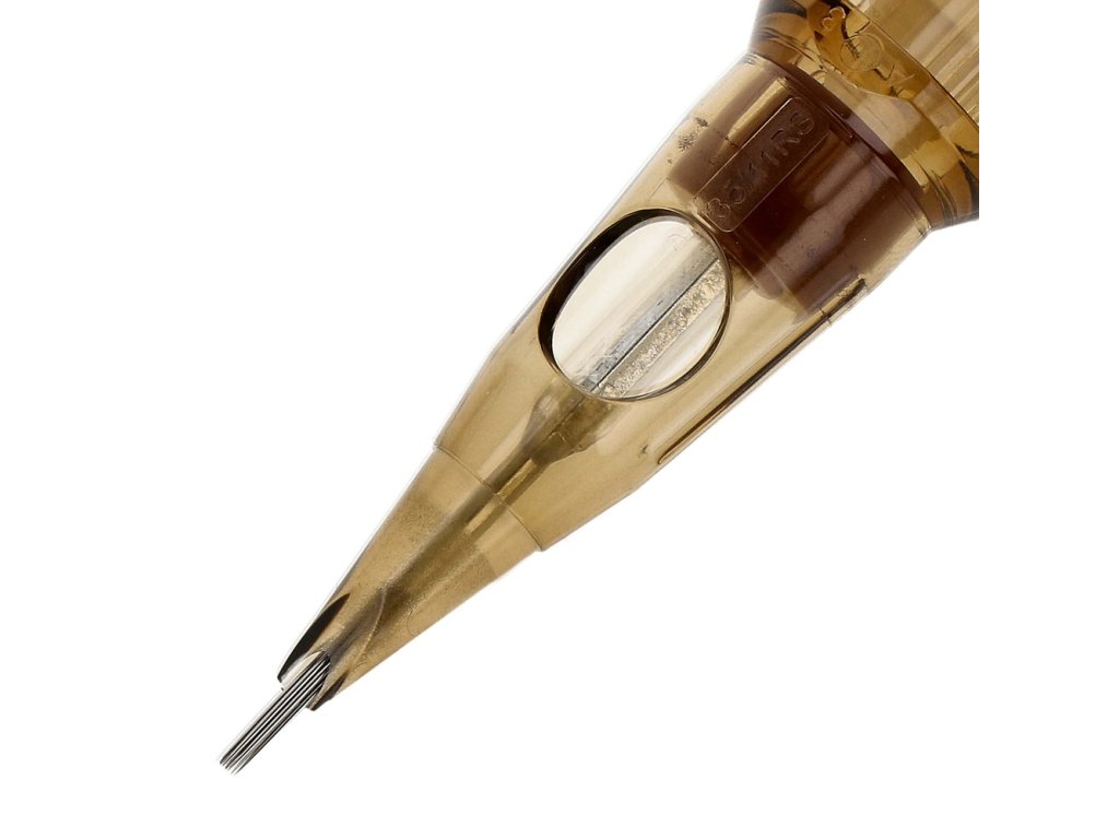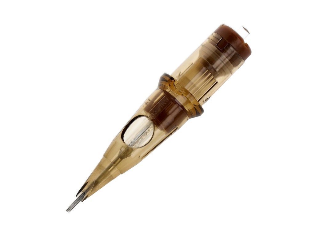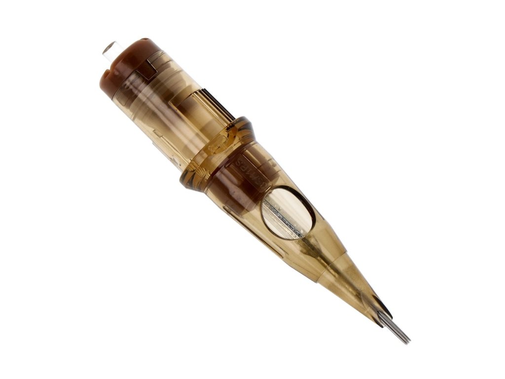 Round Shader Medium Taper - Středně zkosené jehly se používají k vytvoření výraznějších, širších tahů ze staré školy, které umožňují více kontaktu jehly s kůží, aby se pod kůži dostalo více inkoustu.