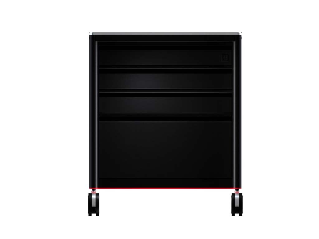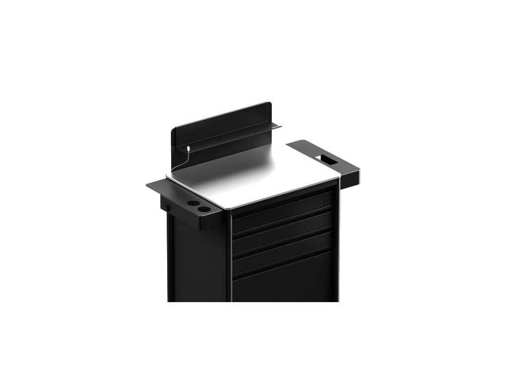 Pojezdy zásuvek mají nyní uzamykací systém, který zabraňuje otevření zásuvek při přesunu pracovní stanice. Umělec může META 2.0 pohybovat naprosto svobodně, aniž by se zásuvky pohybovaly nebo otevíraly.