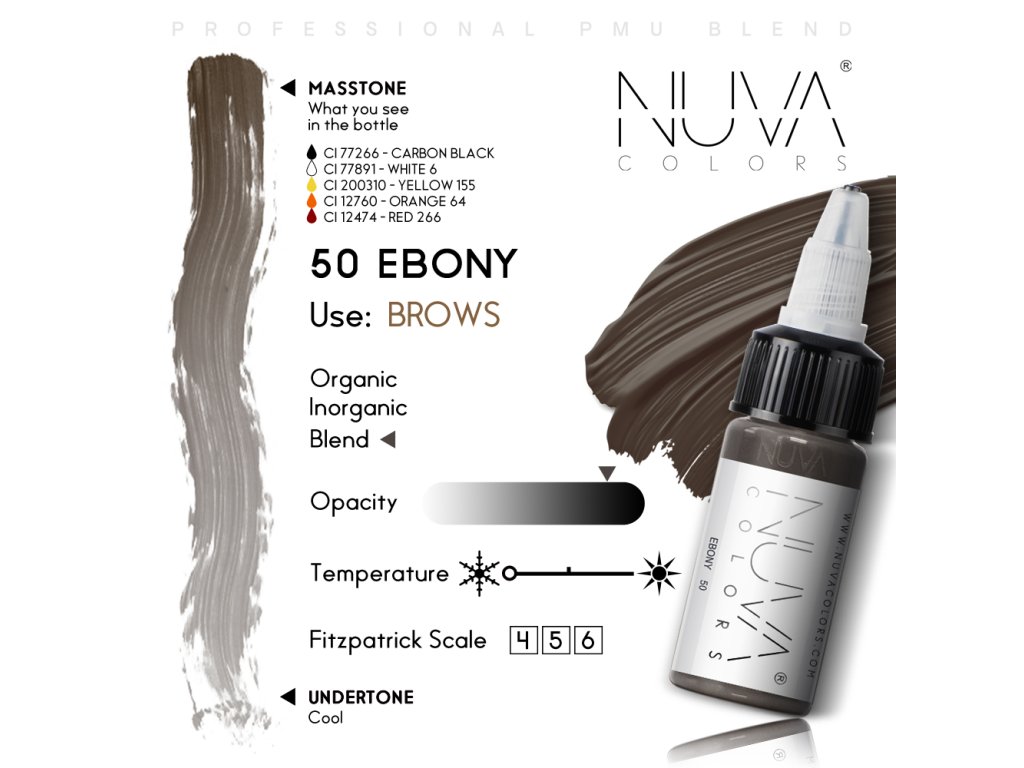 Pigmenty NUVA COLORS poskytují syté a dlouhotrvající efekty. Vyberte si ze šesti sad pigmentů, vybraných speciálně pro různé oblasti pigmentace, včetně rtů, obočí, očních víček, dvorců, jizev a pokožky hlavy. NUVA COLORS zajistí pokaždé hladkou a jednotnou aplikaci.