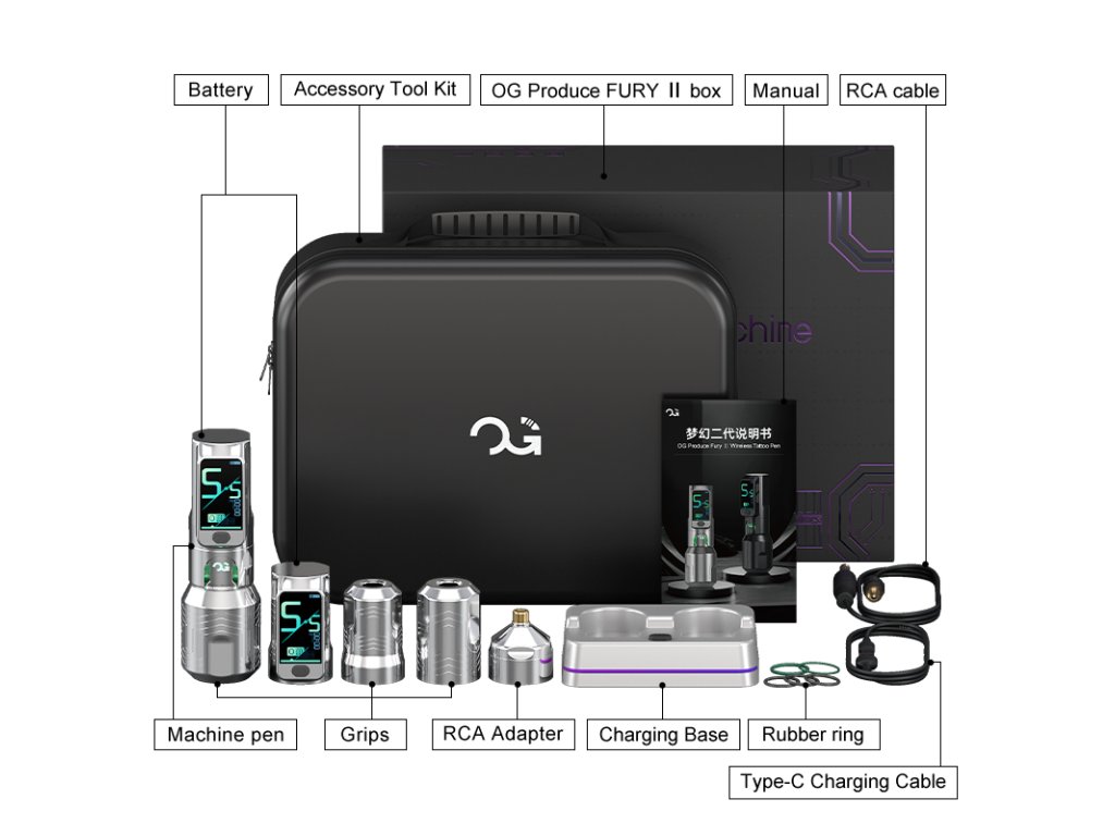 OG Pioneer Fury II bezdrátový tetovací strojek černý 4,2 mm