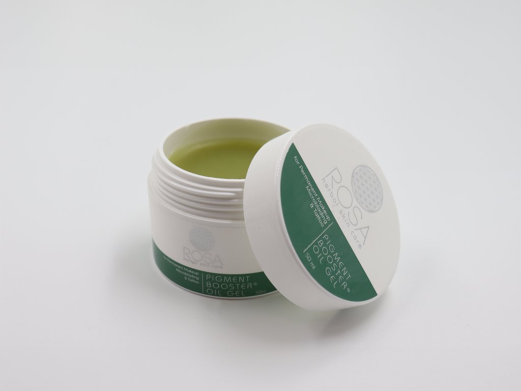 Při tetování dochází při používání anestetik a velkém utírání k podráždění, vysušení a popraskání kůže. Pokožka se působením Pigment Booster OilGelu stává hedvábnou, sametovou a pružnou, takže se po propíchnutí tetovací jehly nepoškodí a nepopraská, ale vytvoří se krásné pravidelné mikroskopické dírky. Díky tomu se pokožka stává vnímavější, neprodukuje intenzivní tkáňové tekutiny, takže jsme schopni lépe a rychleji pracovat. Řada jeho složek má navíc hojivé, infekční a protizánětlivé účinky, čímž podporuje proces hygienického tetování.
