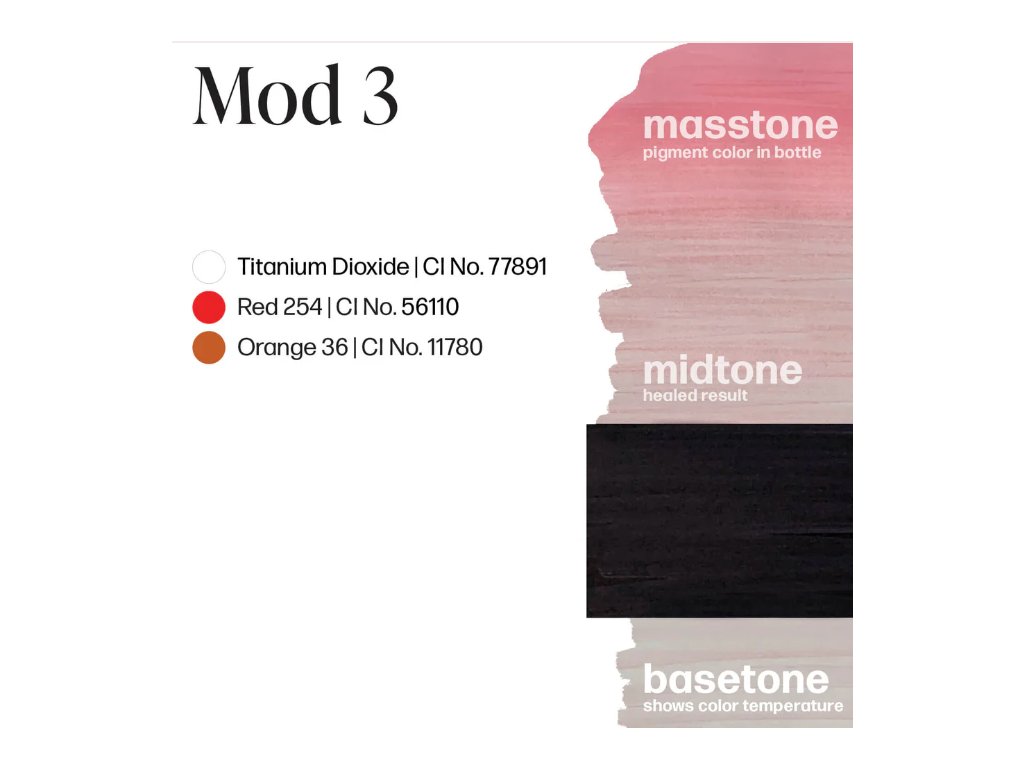Mod 3 je pigment ze sady Embody. Tuto sadu vyvinula Carla Ricciardone ve spolupráci s Perma Blend LUXE. Pigment na rty Embody byla speciálně vyvinuta k neutralizaci studených a tmavých rtů. Sada Carla Ricciardone obsahuje všechny aspekty ošetření pro neutralizaci rtů, takže můžete pracovat na jakémkoli odstínu pleti.