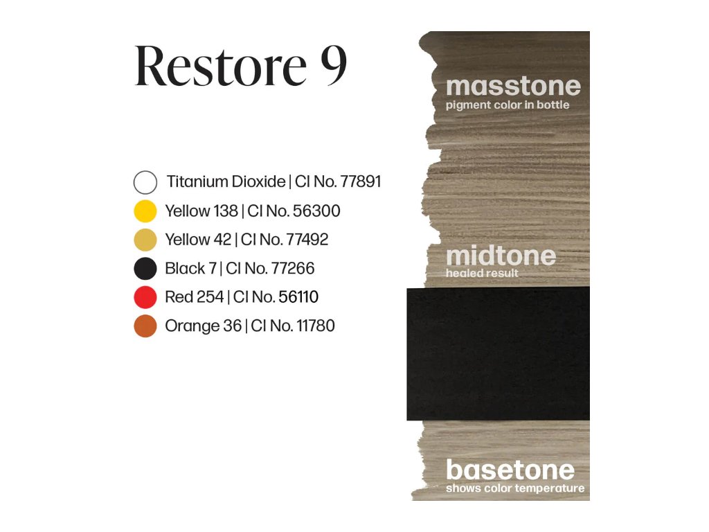 Restore 9 je mírně teplá klasická, šedohnědá barva, která kopíruje vlasové folikuly. *Nejlépe se používá k doplnění sady Restore Set.