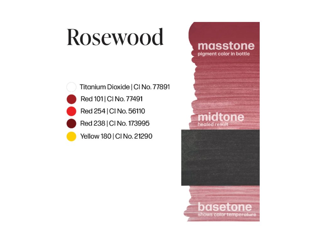 ROSEWOOD - Přirozený růžový nádech barvy, který je často spojován se vzhledem mladistvých barev rtů a přirozeného ruměnce.