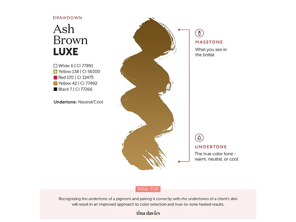 Skvělá klasika. Tento neutrálně chladný, středně popelavě hnědý pigment je ideální pro klientky, které hledají obočí na bázi popela.