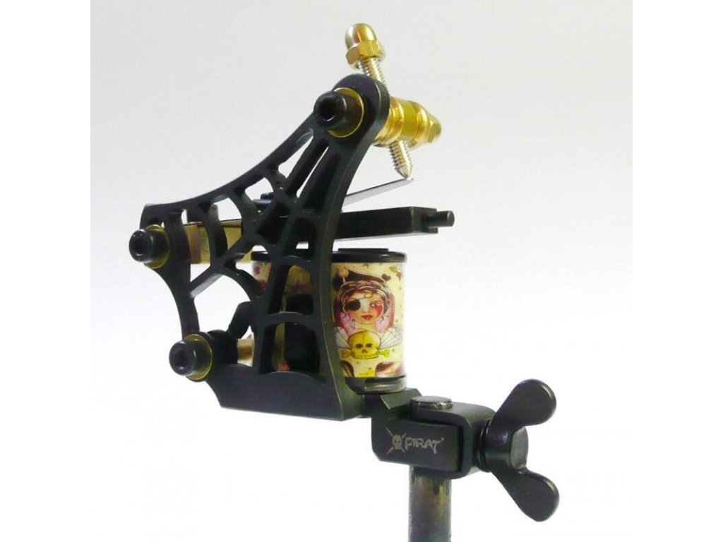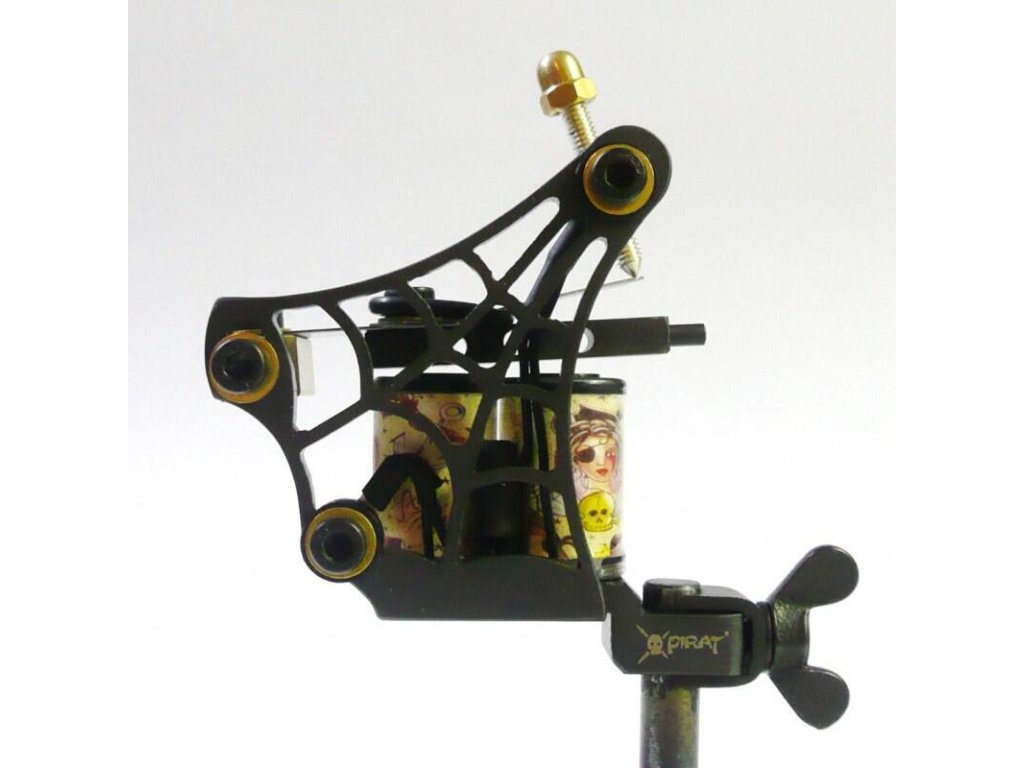 Český ručně vyráběný tetovací strojek - stylový linkovací tetovací strojek ve tvaru pavučiny. Nejnovější a hodně povedený model. Výrobce doporučuje jako svůj nejpovedenější model. Černá barva provedení. Rám strojku : ocel Hmotnost :170gr Optimální napětí : 4,5-6V Rychlost (bez jehel): 135-140 HZ Duty 50-53% Výrobce : Pirat Hand Made Tattoo Machine Záruka : 3 roky, záruční a pozáruční servis v České republice.Doplňkové parametry