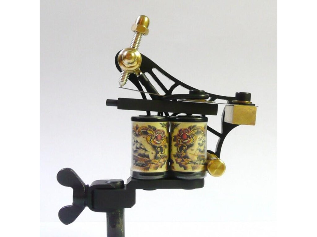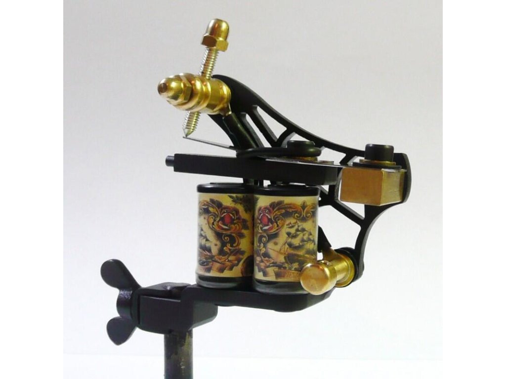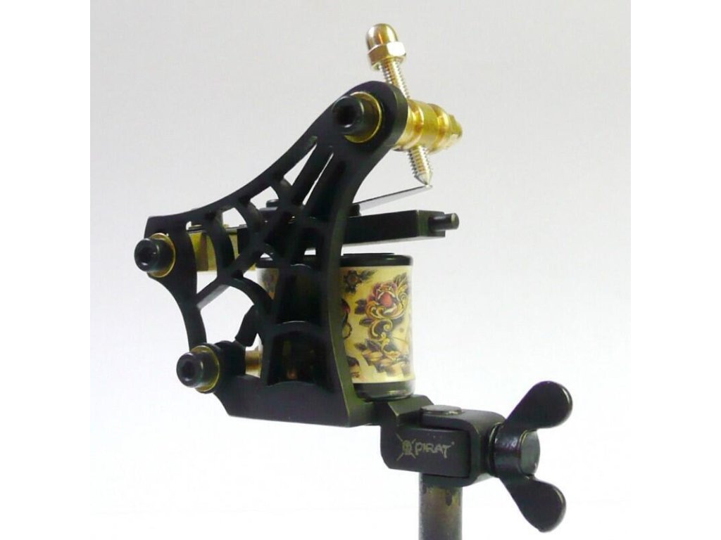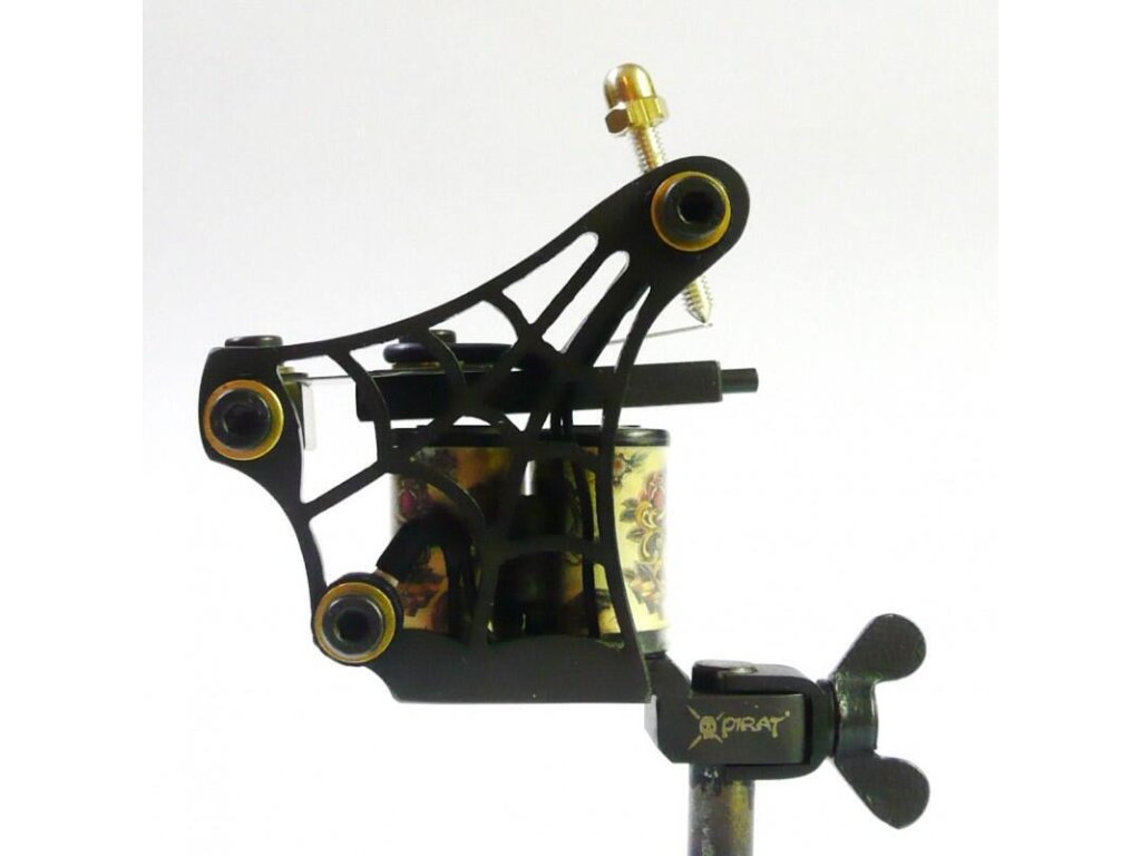 Český ručně vyráběný tetovací strojek - stylový stínovací tetovací strojek ve tvaru pavučiny. Nejnovější a hodně povedený model. Superhladký chod na jemnější práci. Černá barva provedení. Rám strojku : ocel Hmotnost :170gr Optimální napětí : 5-6V Rychlost (bez jehel): 115-120 HZ Duty 45-46% Výrobce : Pirat Hand Made Tattoo Machine Záruka : 3 roky, pozáruční servis v České republice.Doplňkové parametry
