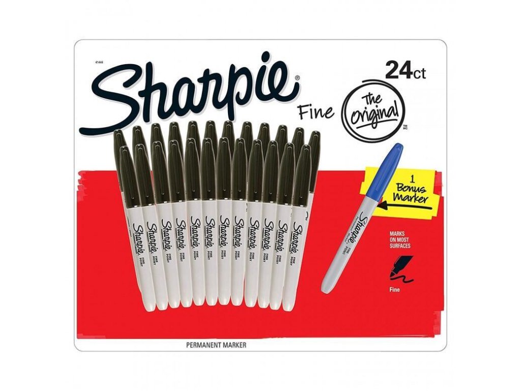 Sada 24 fixek černých Sharpie s tenkou špičkou + 1x bonus modrá