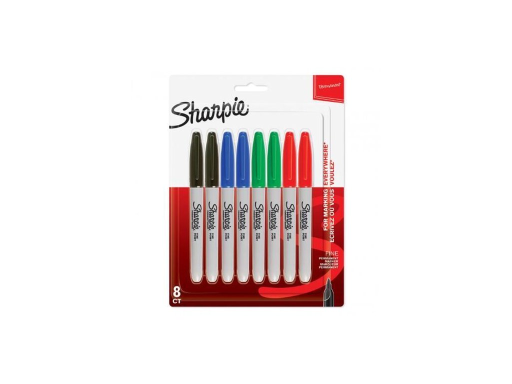 Sada 8mi fixek Sharpie s tenkou špičkou.