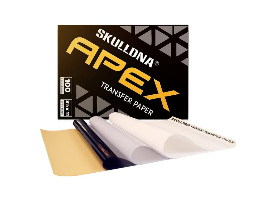 Skulldna Apex je vysoce kvalitní přenosový papír, který zajistí ostré a čitelné linie pro všechny styly tetování. Díky modré barvicí vrstvě jsou kontury motivu dobře viditelné a práce tatéra je rychlejší a přesnější.