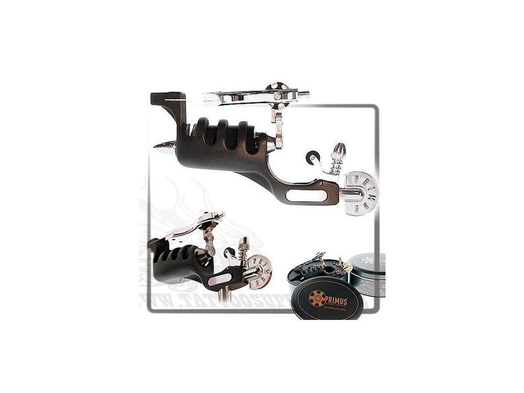 Tetovací strojek Sunskin Primus Black-Brass rotary 130g, pro linkování, stínování i vybarvování. Excelentní provedení, super práce se strojkem, těžší než ostatní rotační strojky. PRIMUS Special Hybrid is the revolutionary rotary Tattoo Machine devised and produced by SUNSKIN TATTOO MACHINES. The particular softness of this machine allows to perform faster and easier lining, coloring and shading without the need for adjustment. Primus is built on our proprietary system Ti-Flex, an innovative concept of motion transmission made entirely of titanium. It's composed by a jointed lever with two bearings, integrated with a special rubberized connecting rod. No lubrification and no maintenance necessary. Rigorous and accurate endurance testing guarantees high reliability and long life. - For lining, coloring and shading; - High quality motor - Made in Germany; - New frame design made of solid brass; - Compact and lightweight; - Low noise and vibrations; - Needlebar stabilizer. No rubber bands required; - It can be used with all kinds of grips and needles; - Available with an optional RCA connector. TECHNICAL SPECIFICATIONS Input voltage: 5 - 12 Volts Motor: 12 Volts - 4.5 Watts RPM Range: 0 - 10.000 RPM Stroke Lenght: 3.6 mm. Suspention Stroke: 0.5 - 1.5 mm. Weight: Approx. 130 gr. Dimensions: (90 x 25 x 55 mm.) Connection: Clip Cord (optional RCA jack)