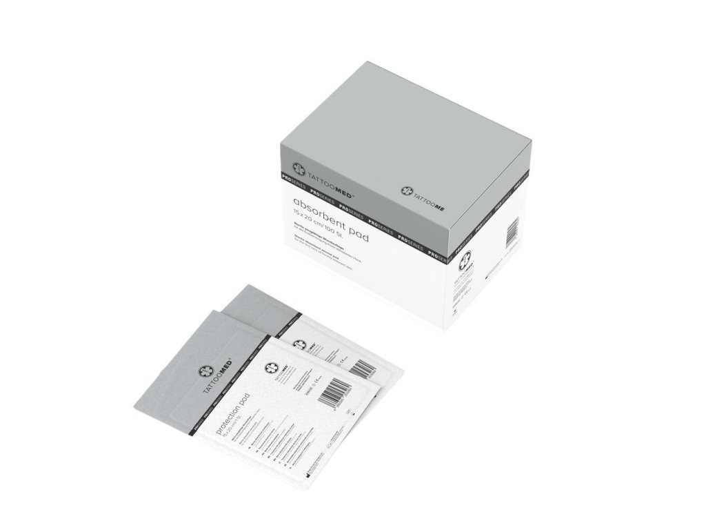 Absorpční podložka TattooMed nabízí optimální funkci pro podporu pokožky v tomto pro ni stresujícím a rizikovém období. Speciální bavlněná celulózová tkanina, která zajišťuje optimální savost, absorbuje zbytky inkoustu a tekutinu z rány a také zabraňuje nadměrnému vysychání - vynikající alternativa pro alergiky.