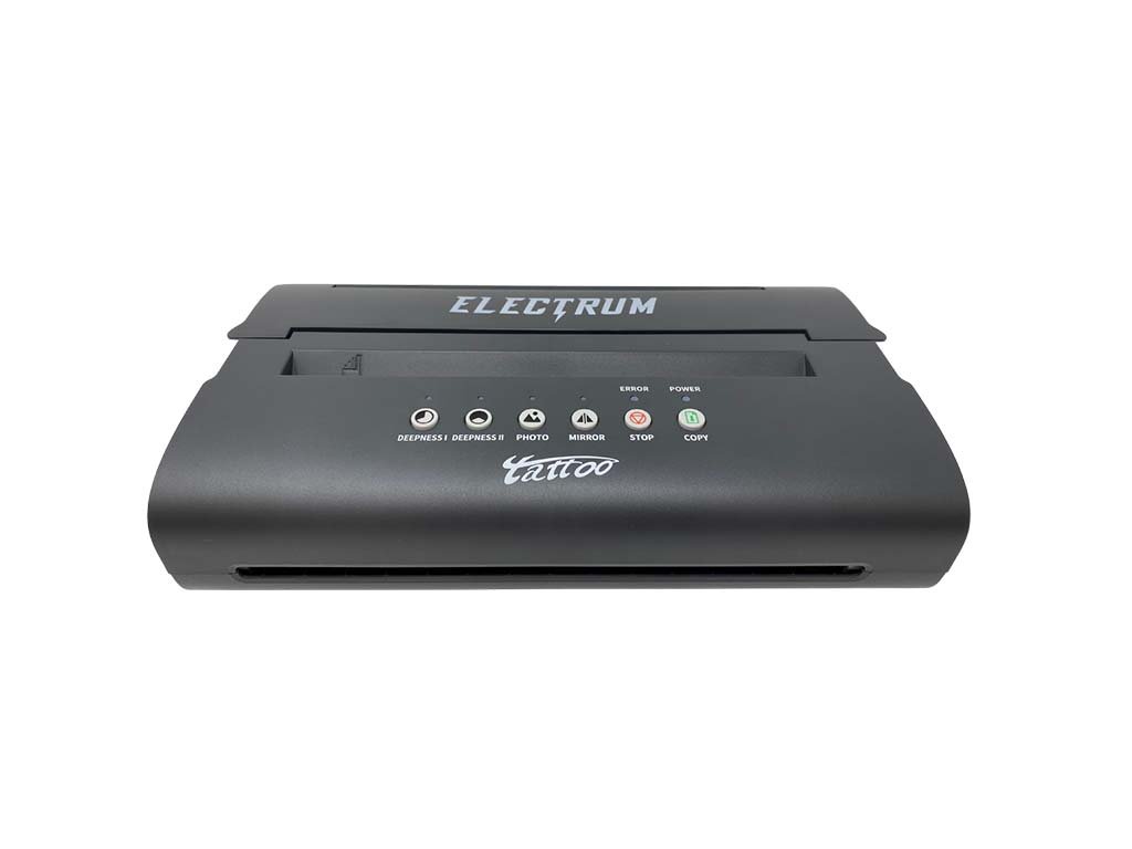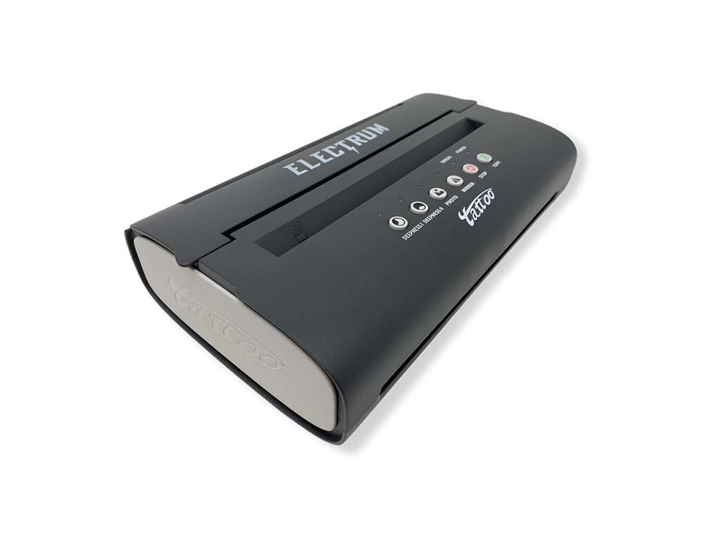 Lehká a snadno přenosná Electrum termální kopírka pro termo přenášecí papíry, umožňuje tatérovi vytvořit kopii návrhu z vytisknutého či nakresleného motivu na obyčejném papíru o velikosti A4 nebo A5 na tetovací termo papír, který pak může být přenesen na kůži člověka, který bude tetován.