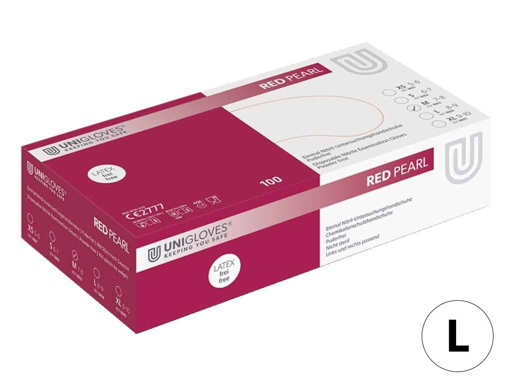 Unigloves nitrilové rukavice červené - Red Pearl, 100 ks, L